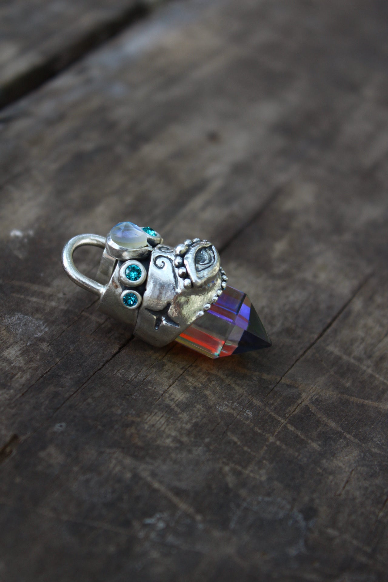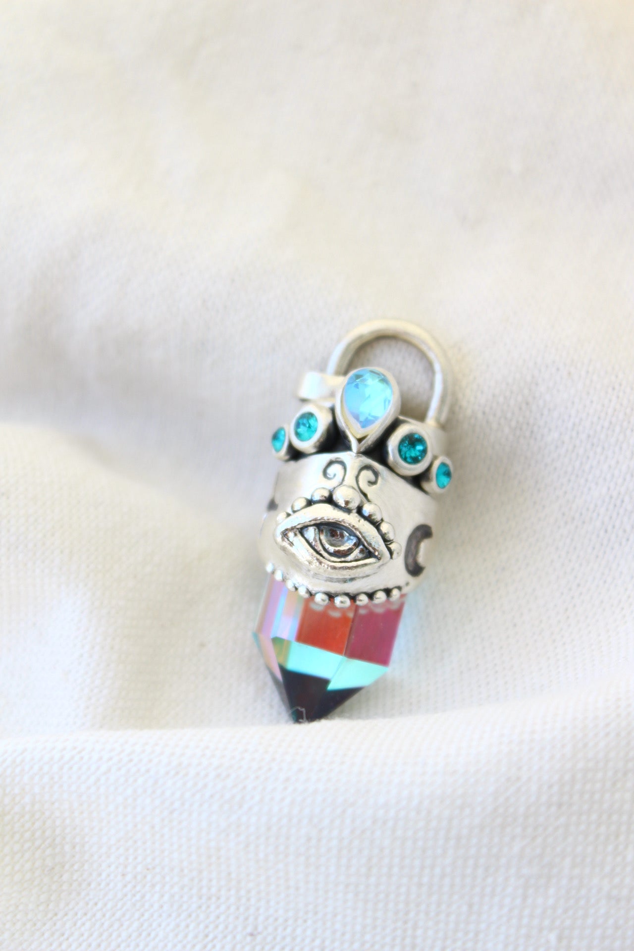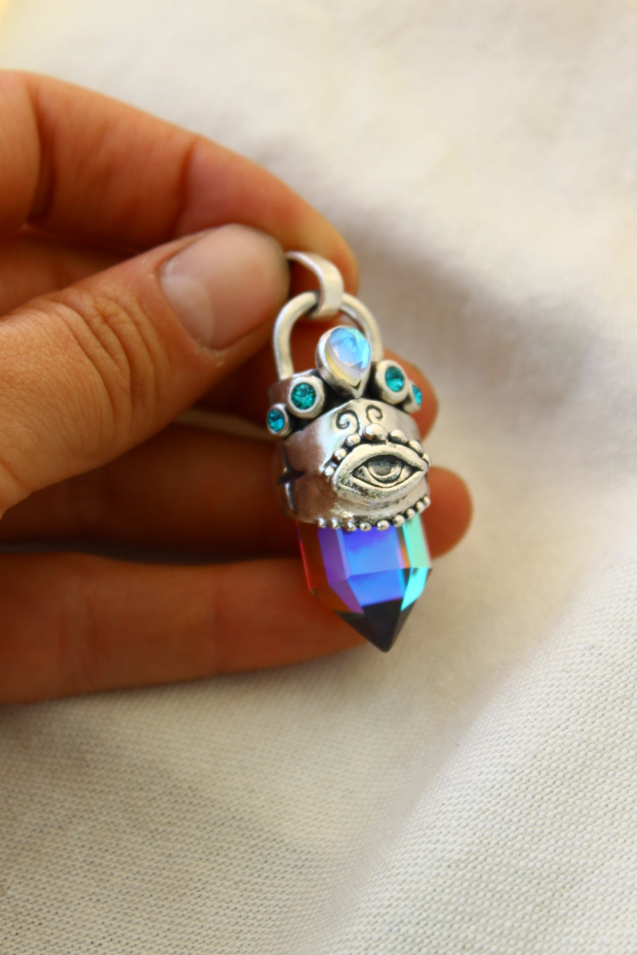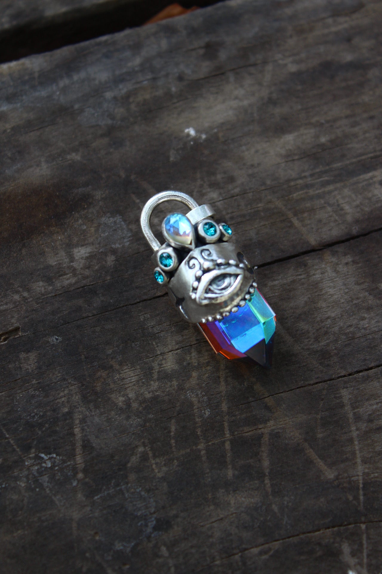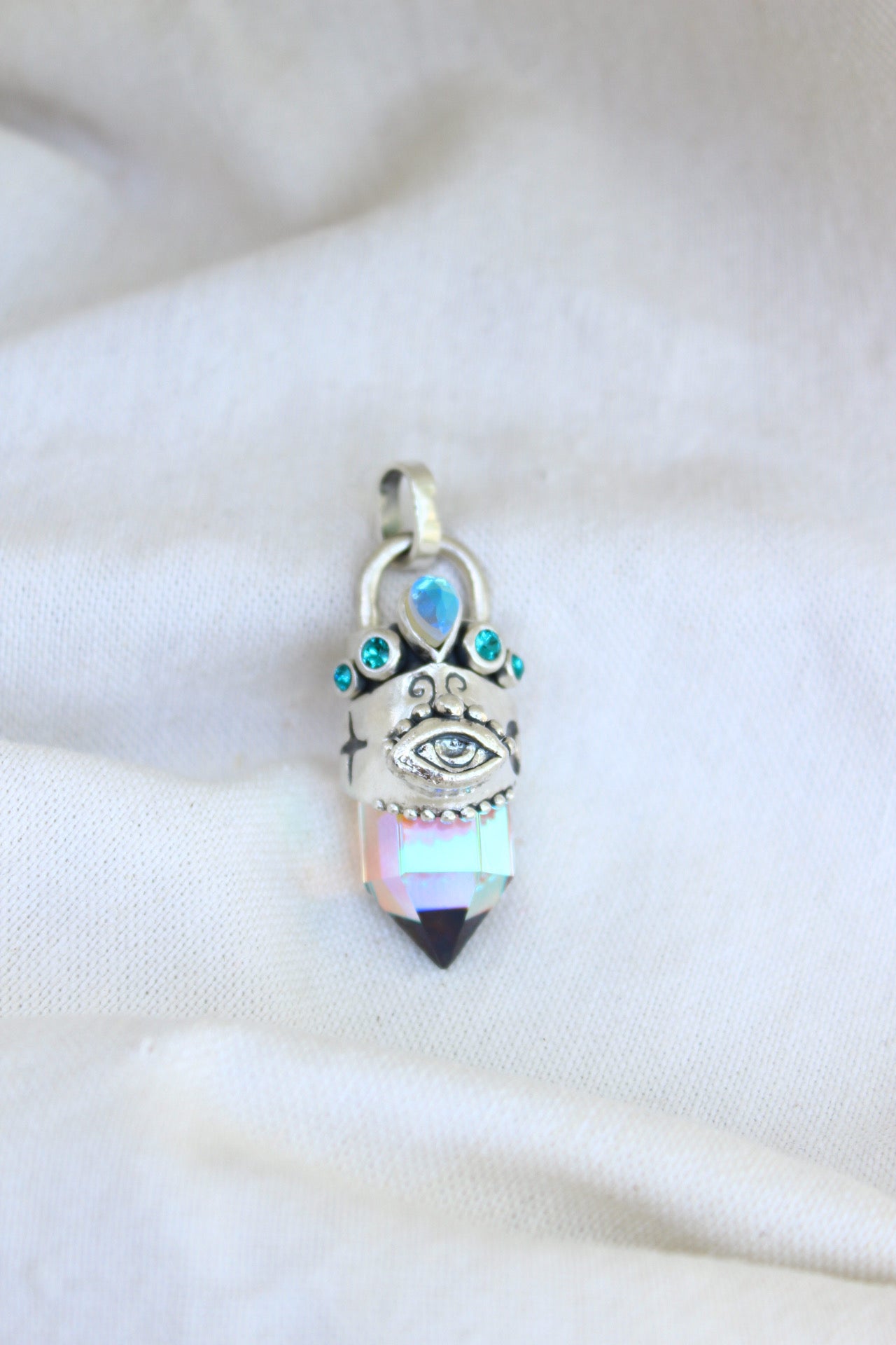 Amuleto hecho a mano en plata 950 punta de cuarzo místico