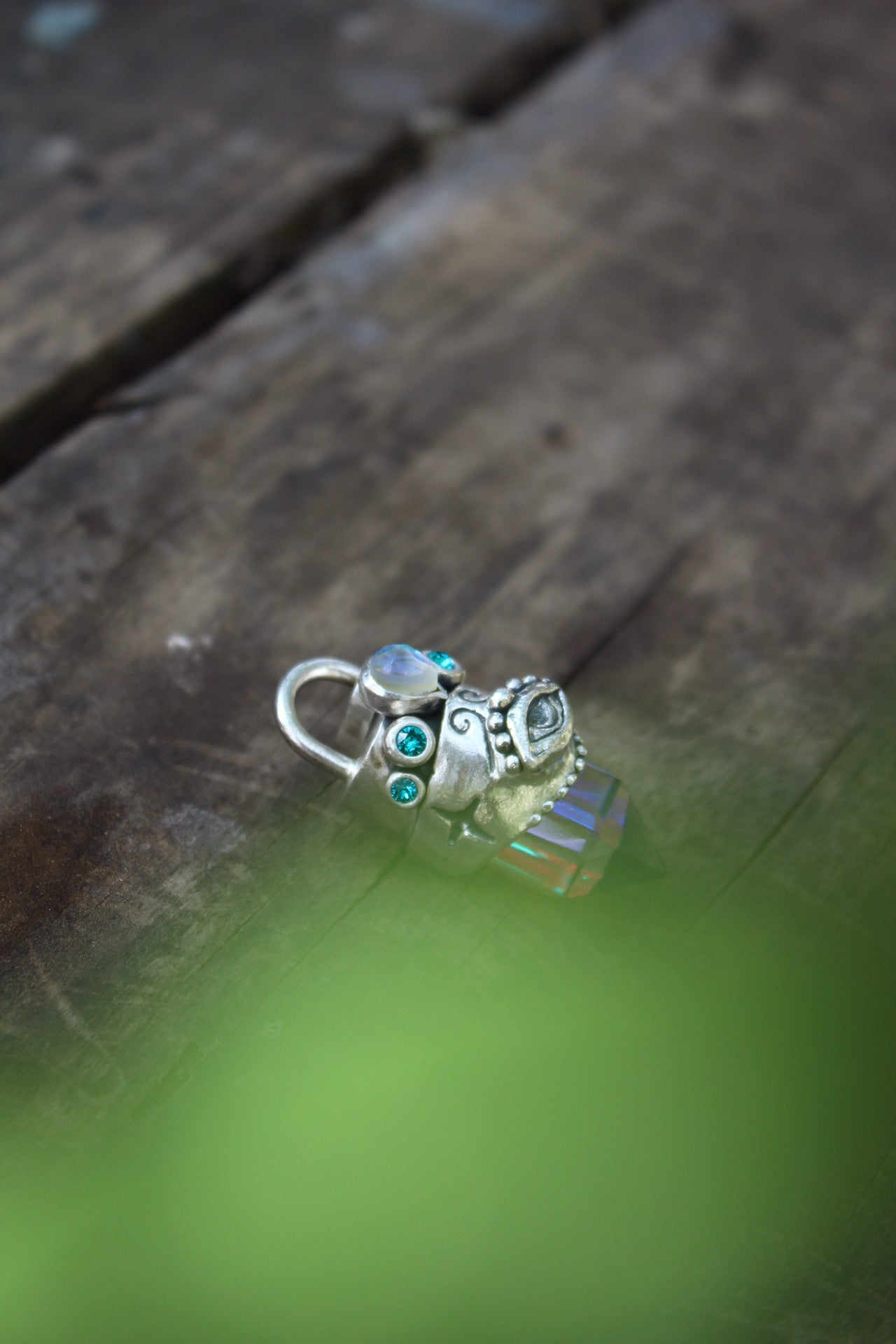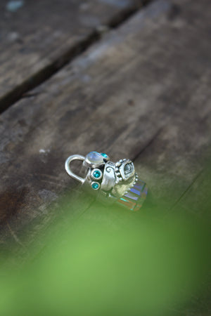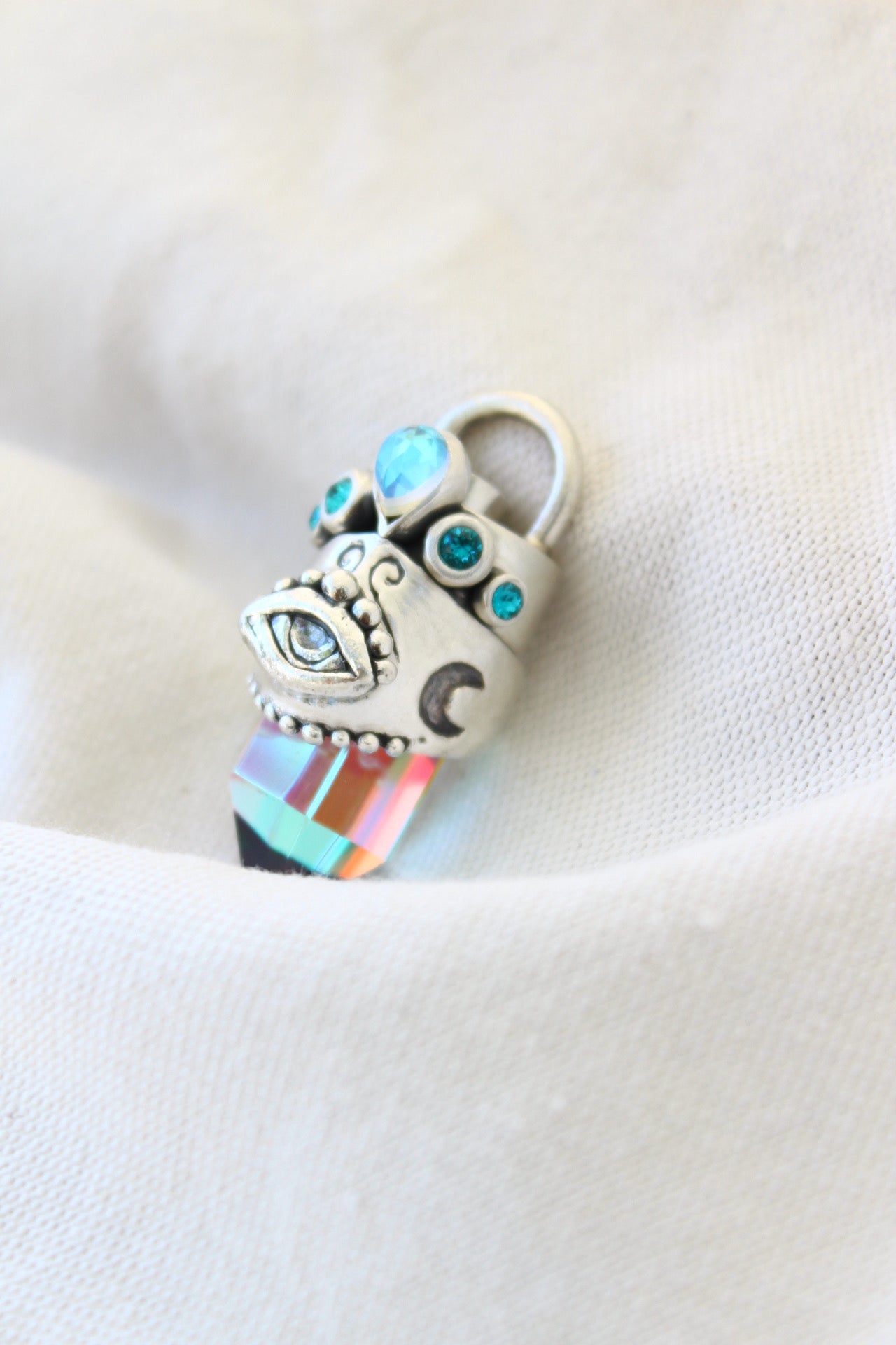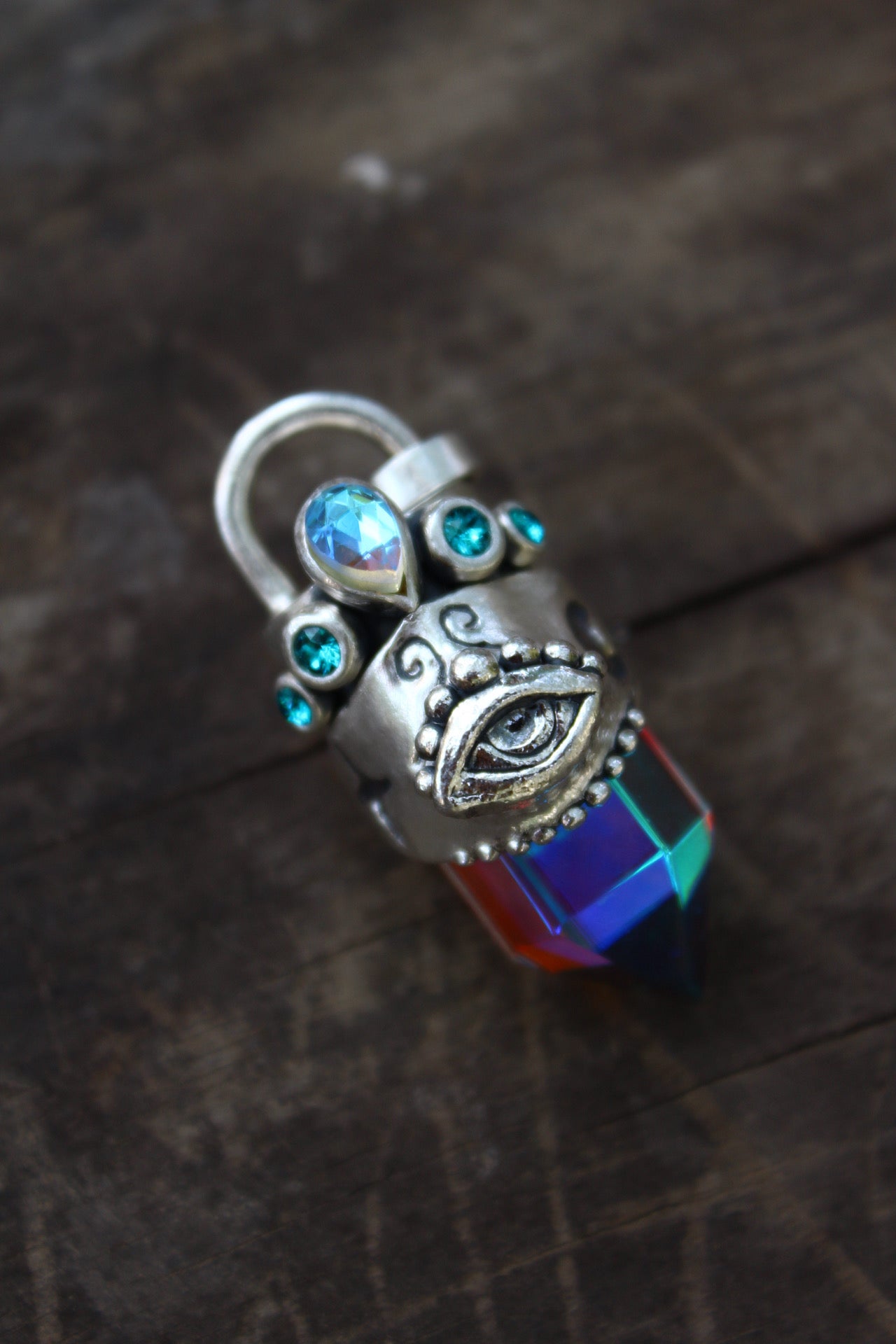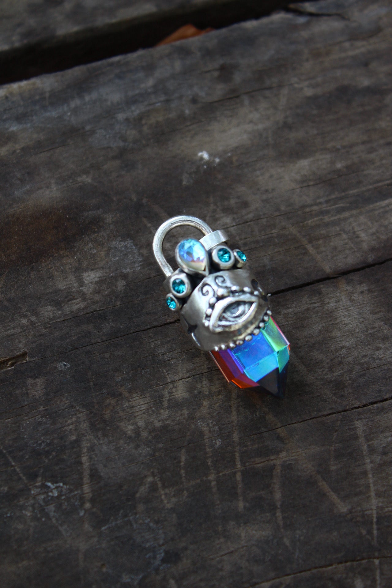 Amuleto hecho a mano en plata 950 punta de cuarzo místico