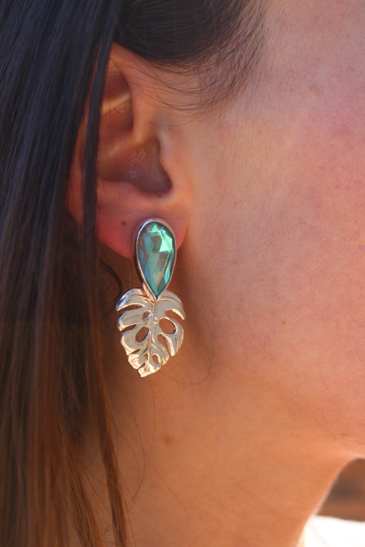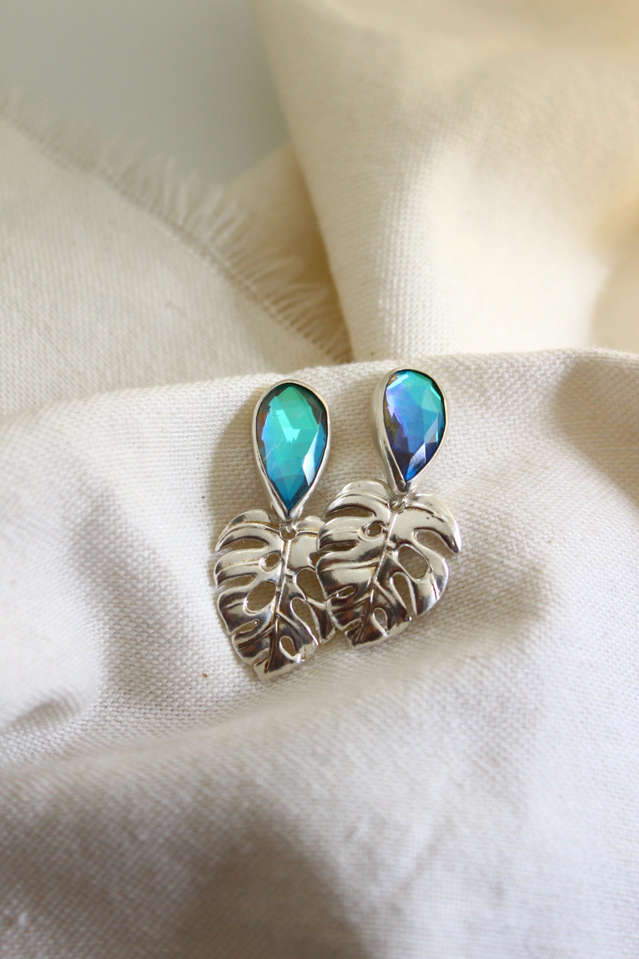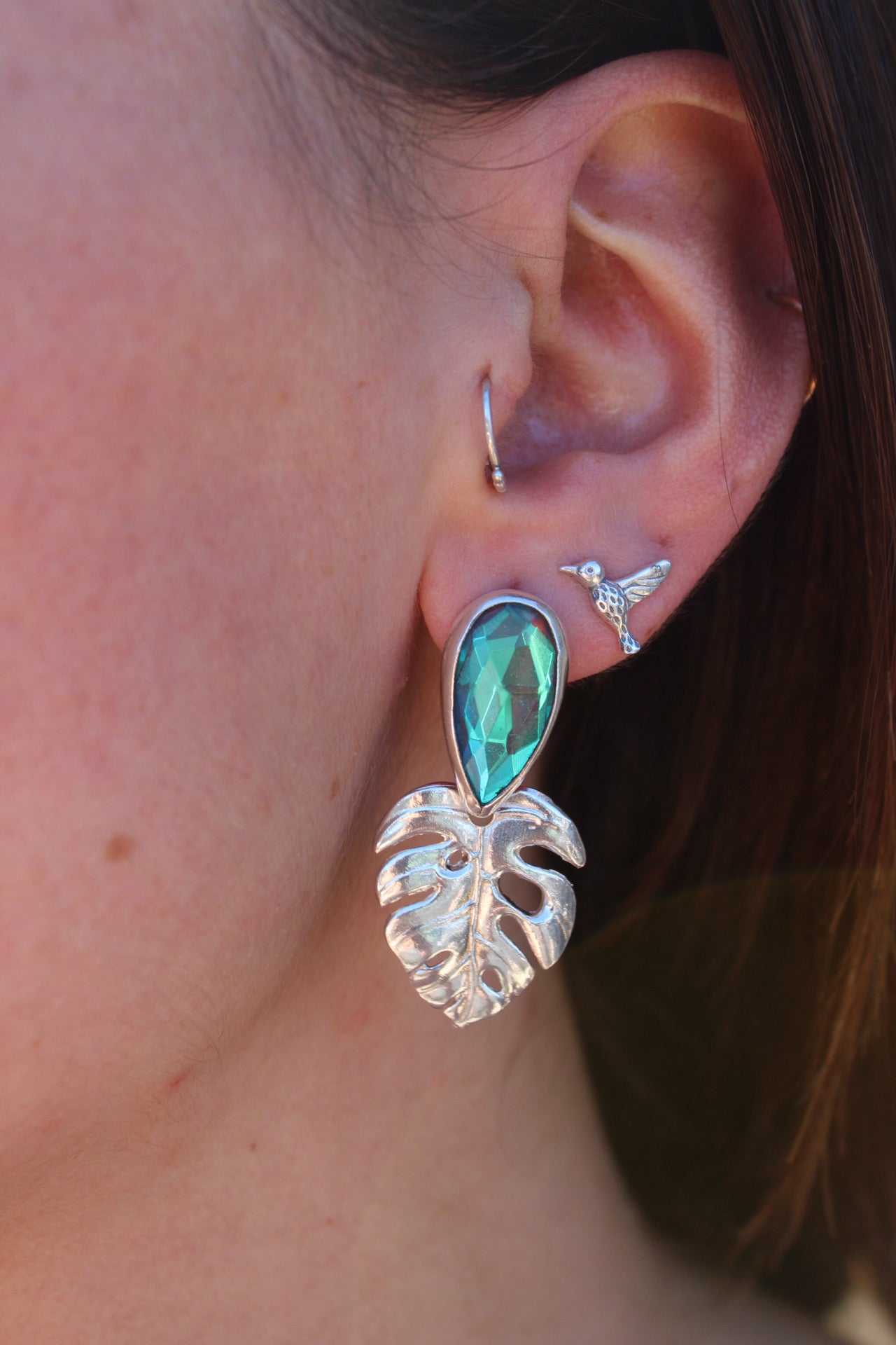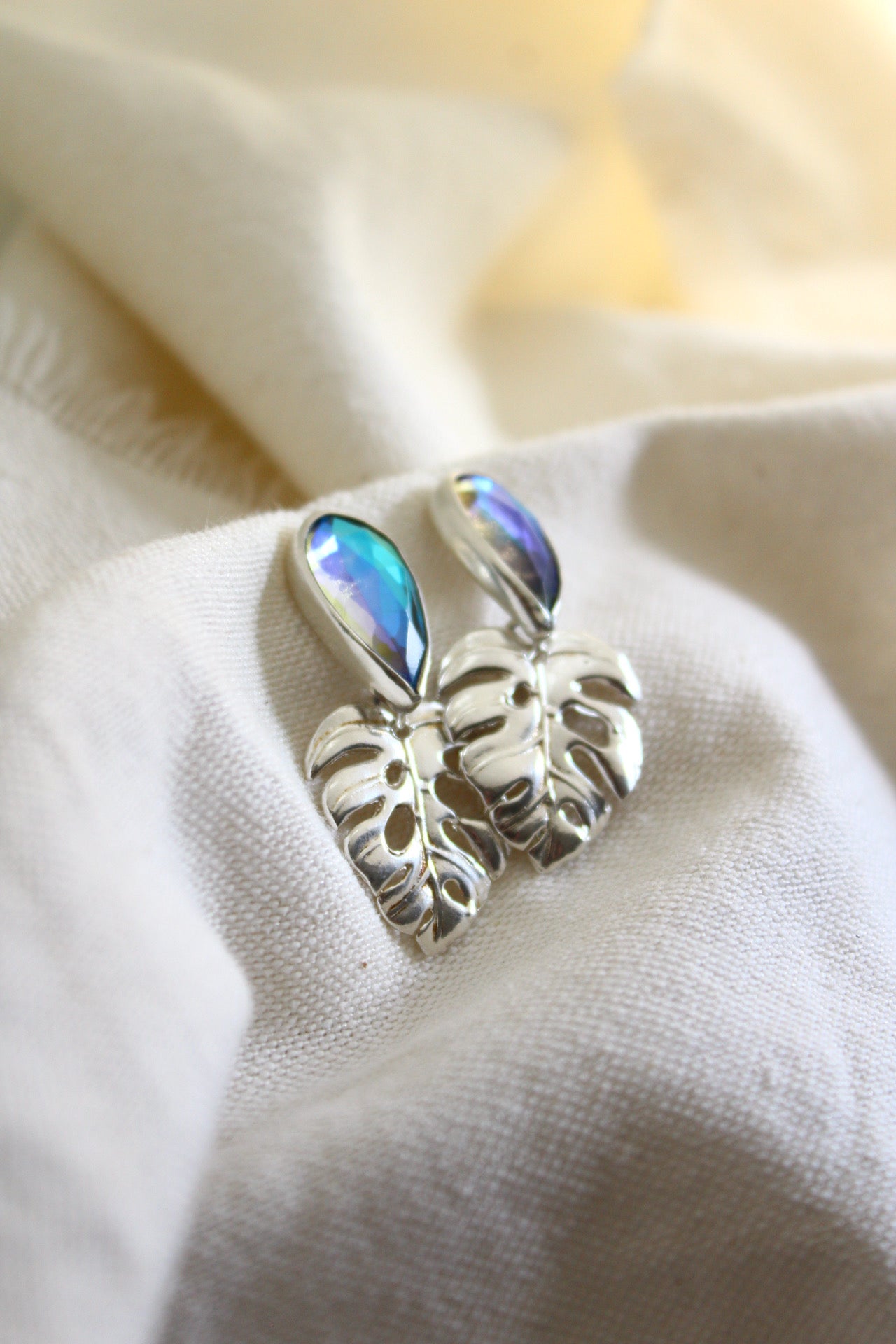 Aros hechos a mano en plata 950 con piedra cuarzo místico