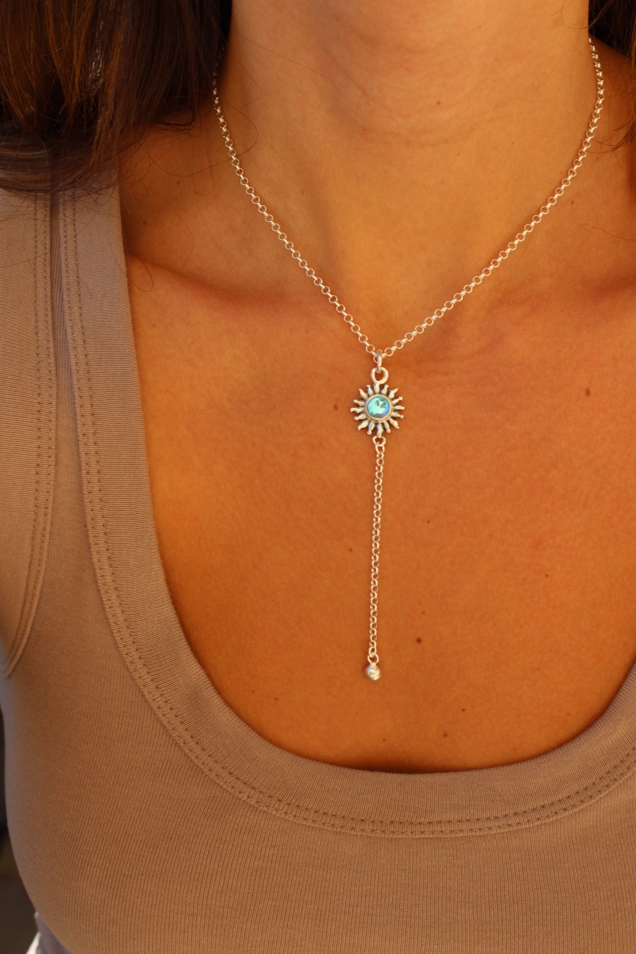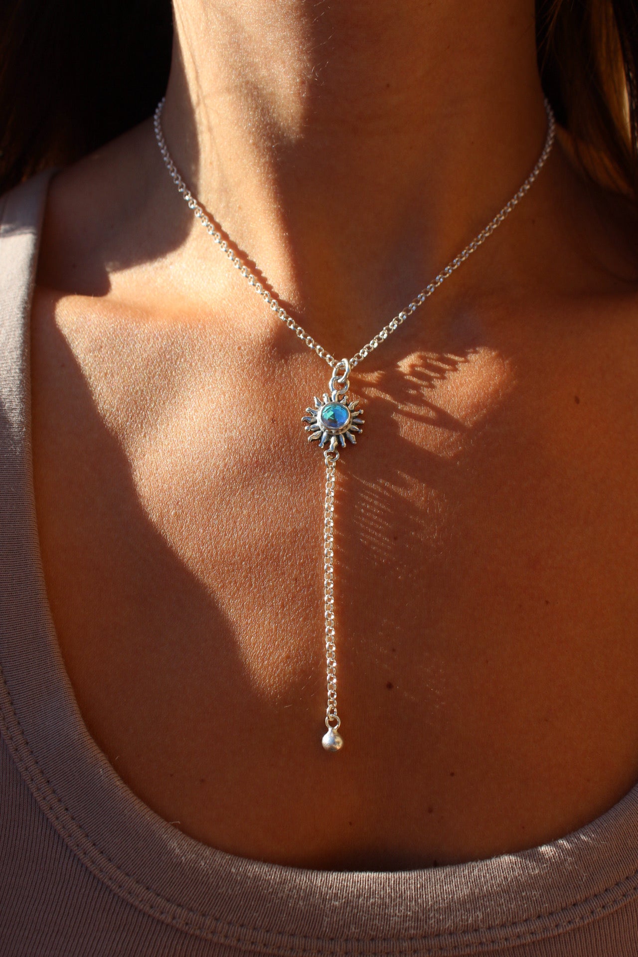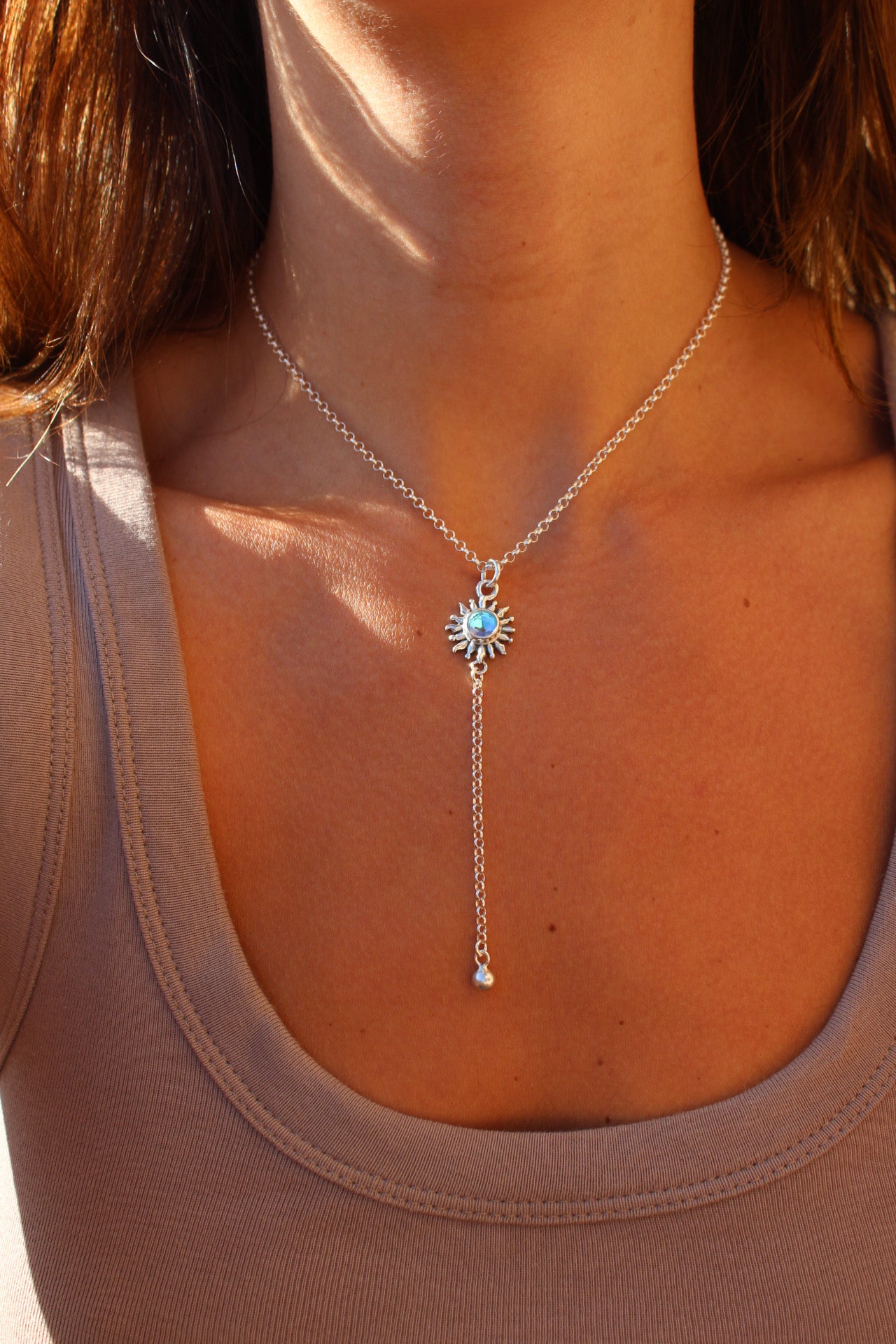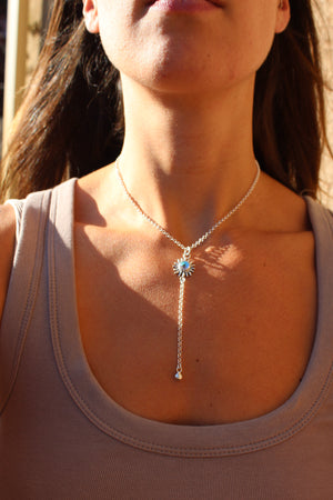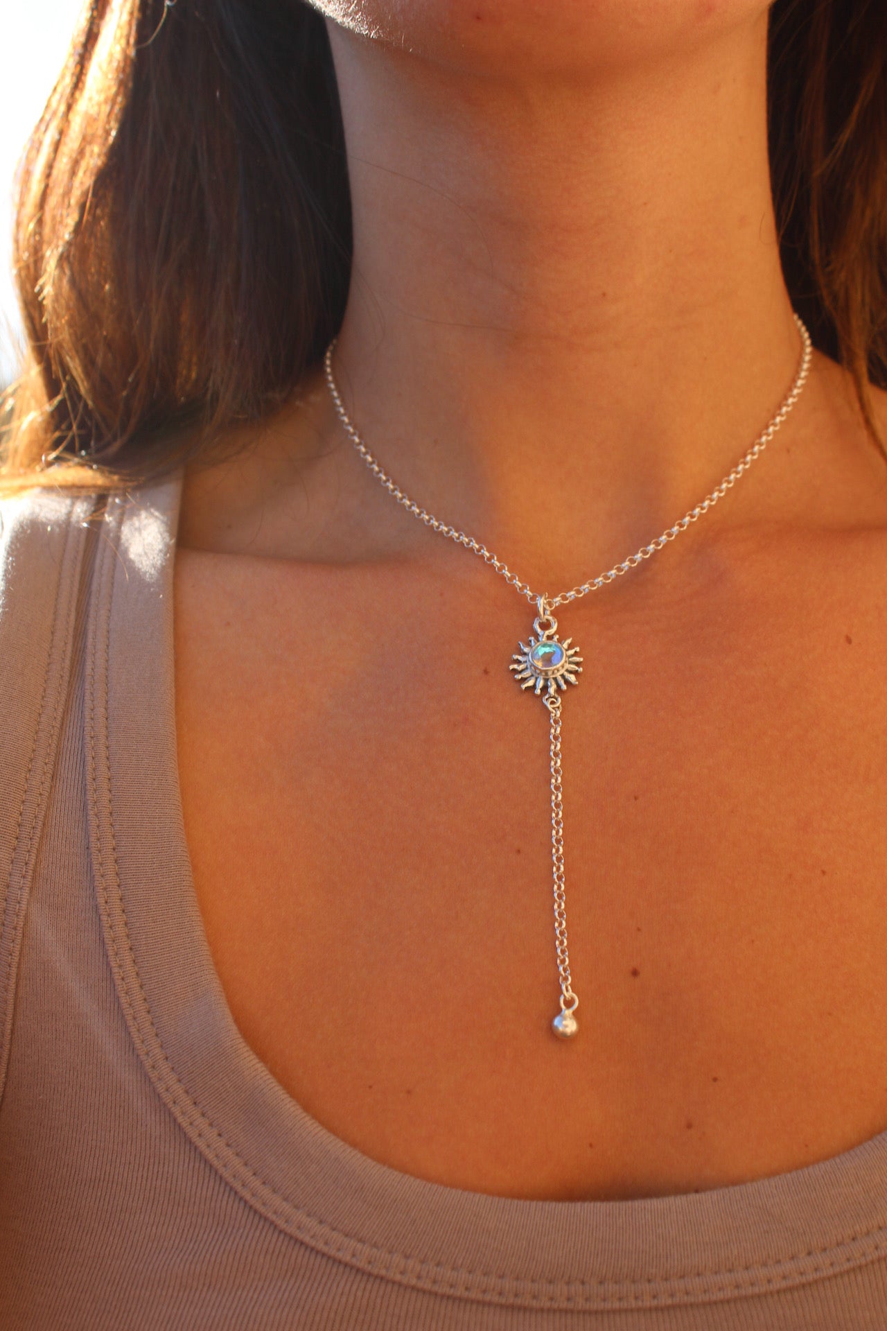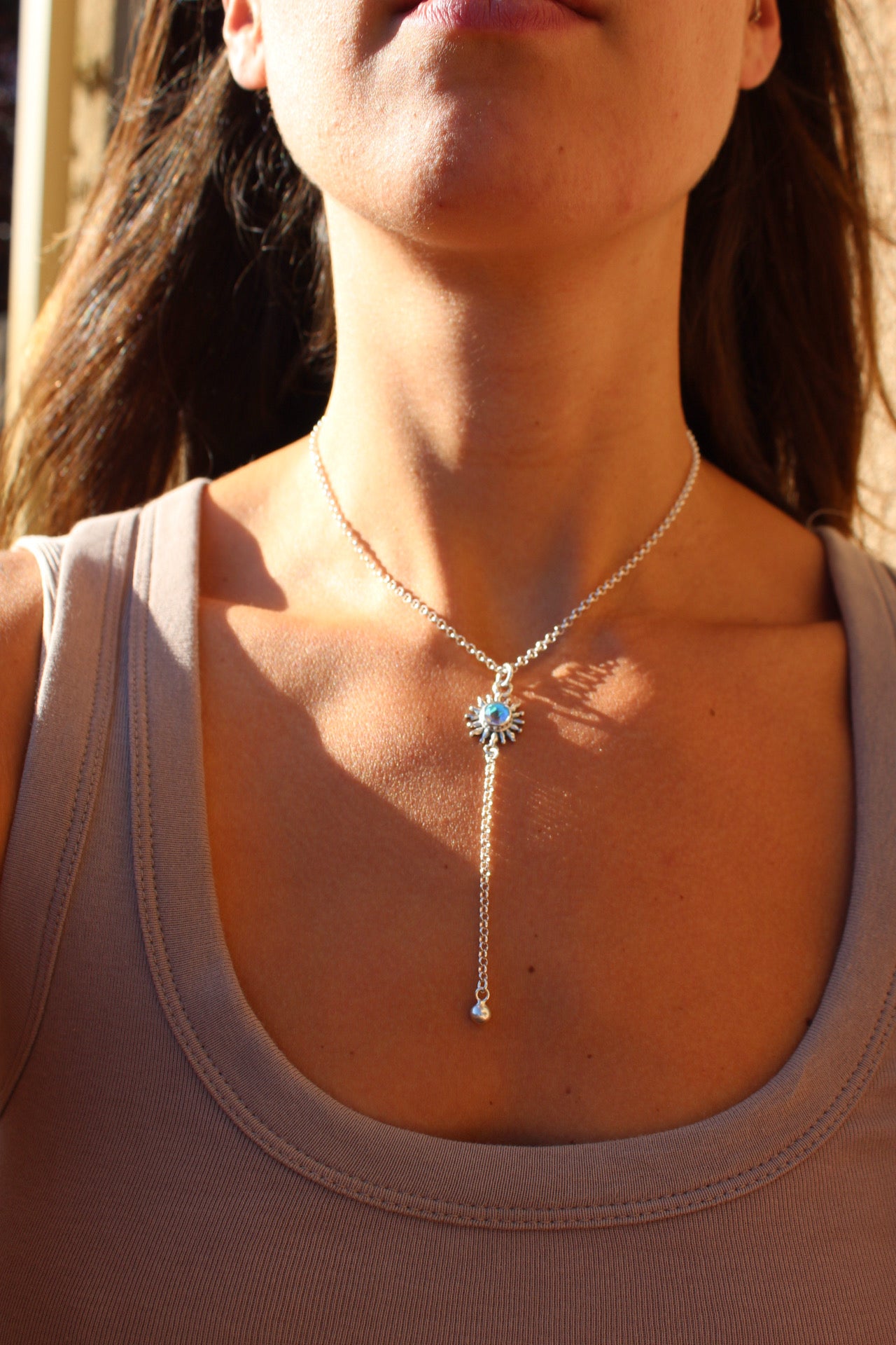 Collar solei con cuarzo místico incluye cadena de 40cm más la cascada de 7cm